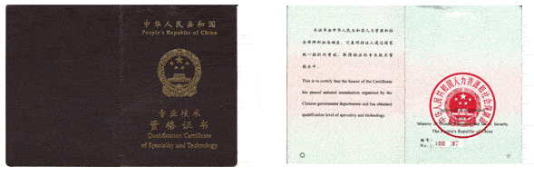 中级职称证书: